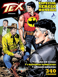 Está finalmente disponível nas bancas portuguesas este Tex apresenta: Especial Sergio Bonelli apesar de inicialmente ter sido anunciado para Junho último. As razões para tão grande atraso, como diria Panoramix, só são transmitidas da boca da distribuidora para o ouvido da distribuidora - ou talvez nem sequer assim…